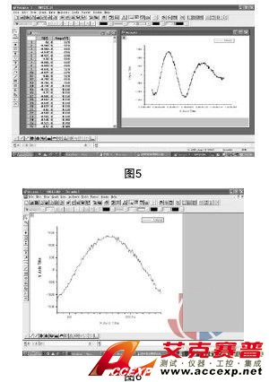 在計(jì)算機(jī)的開始程序列選項(xiàng)中選取OriginPro7.0程序,并選中OriginPro7.0選項(xiàng),然后打開菜單欄File中ImportASCII項(xiàng),鍵入所存的CSV文件名并打開,脈沖反射波形的相關(guān)數(shù)據(jù)參數(shù)將自動存入到數(shù)據(jù)列表格中。同時(shí)打開與數(shù)據(jù)列表中相應(yīng)數(shù)據(jù)的波形曲線圖,見圖5。