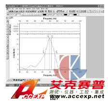 打開菜單欄Analysis下拉式菜單,選中FFT選項(xiàng),對圖6所示的脈沖反射波形進(jìn)行傅立葉變換。根據(jù)被測探頭的頻率標(biāo)稱值,在頻譜圖橫坐標(biāo)中選取相應(yīng)的頻率范圍值(這一范圍值通常為0MHz到被測探頭頻率標(biāo)稱值的2倍),這樣就得到了理想的脈沖反射頻譜圖。在脈沖反射頻譜圖上,把脈沖反射響應(yīng)曲線上的頻率峰值點(diǎn)下降6dB處(頻率響應(yīng)曲線的峰值點(diǎn)下降一半處)的fL和fH值定義為帶寬的低值和高值,兩者之間的算術(shù)平均值即為被測探頭的回波頻率,見圖7。