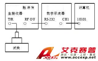 測試裝置由ACCEXP-590脈沖發(fā)生接收器、泰克數(shù)字示波器、超聲波探傷標(biāo)準(zhǔn)試塊、對比試塊和頻率自動分析軟件等組成。