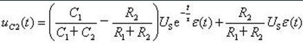 從這個式子可以看出,輸出電壓躍變后的初始值與兩個電容的比值有關(guān)。用三要素公式可以得到輸出電壓的表達(dá)式: