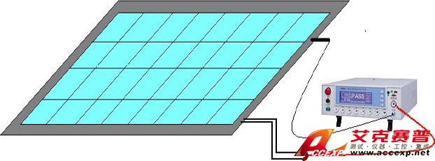 把短路的太陽能電池測試儀器模塊的輸出端口連接到直流絕緣試驗儀的正極側(cè)。
