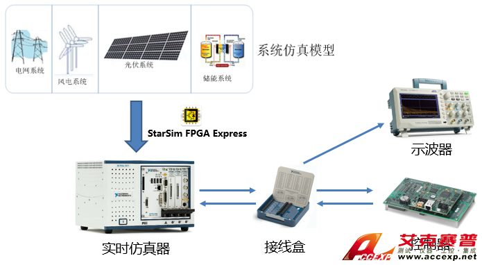 遠(yuǎn)程虛擬仿真實(shí)驗(yàn)只是進(jìn)行離線仿真,沒有辦法和實(shí)際硬件控制機(jī)構(gòu)成閉環(huán),并進(jìn)行實(shí)時(shí)的測(cè)試。與離線仿真不一樣的是,半實(shí)物仿真實(shí)驗(yàn)平臺(tái)采用NI硬件作為仿真的硬件平臺(tái),采用StarSim仿真軟件作為實(shí)時(shí)仿真的軟件架構(gòu),通過結(jié)合最先進(jìn)的硬件技術(shù)與建模仿真技術(shù)來實(shí)現(xiàn)電力電子實(shí)時(shí)仿真器。實(shí)時(shí)仿真器可以模擬真實(shí)電網(wǎng)中的各類電力電子系統(tǒng)的運(yùn)行情況,例如風(fēng)電系統(tǒng),光伏系統(tǒng),儲(chǔ)能系統(tǒng)以及直流輸電系統(tǒng)、STATCOM、SVG系統(tǒng)等。因此,使用者既可以在半實(shí)物仿真平臺(tái)上,進(jìn)行電網(wǎng)仿真、系統(tǒng)策略方面的研究,也可以通過連接實(shí)際控制器硬件或原型控制器(RCP)的方式,來進(jìn)行硬件在環(huán)測(cè)試,后期還能通過功率放大器來進(jìn)行功率硬件在環(huán)(PHIL)的研究,在科研、教學(xué)和橫向的開發(fā)上均應(yīng)用廣泛。