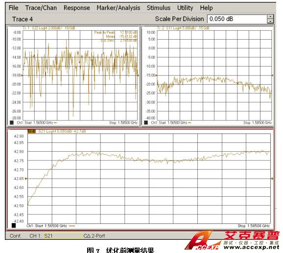 現(xiàn)代的LNA設(shè)計指標(biāo)越來越好,優(yōu)異的LNA性能對傳統(tǒng)的參數(shù)測量方法提出了很大挑戰(zhàn),但是通過合理地設(shè)置網(wǎng)絡(luò)分析儀以及優(yōu)化校準(zhǔn)過程,可以獲得較高的測量精度。