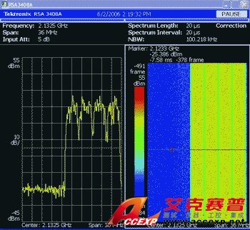 圖1 實時頻譜分析儀能夠快速檢測頻譜紊亂(例如圖中右邊)