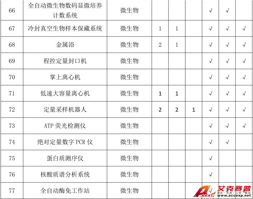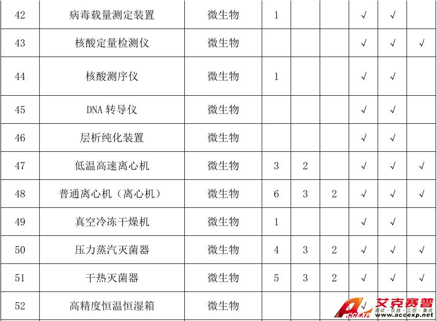 近期,國家衛(wèi)健委規(guī)劃司發(fā)布《國家衛(wèi)生健康委規(guī)劃司關(guān)于征求疾病預(yù)防控制中心建設(shè)標(biāo)準(zhǔn)(征求意見稿)意見的函》,就疾病預(yù)防控制中心建設(shè)標(biāo)準(zhǔn)征求意見。該標(biāo)準(zhǔn)包含了疾控中心實(shí)驗(yàn)室選址與規(guī)劃布局、建筑面積指標(biāo)、建筑標(biāo)準(zhǔn)、儀器設(shè)備及相關(guān)指標(biāo)等多項(xiàng)內(nèi)容。標(biāo)準(zhǔn)在《第六章 儀器設(shè)備及相關(guān)指標(biāo)》中要求省級、市級、縣級疾病預(yù)防控制中心根據(jù)所承擔(dān)的專業(yè)類別、工作類型、職責(zé)和任務(wù)應(yīng)配備的專業(yè)儀器設(shè)備參照附錄 B 執(zhí)行。國家級疾病預(yù)防控制中心的儀器設(shè)備,根據(jù)職能和需求配備。在《附錄 B 疾控預(yù)防控制中心實(shí)驗(yàn)室主要儀器裝備配備標(biāo)準(zhǔn)》列出了需配備的生命科學(xué)、物性測試、分析儀器等320類儀器。