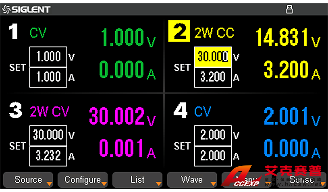 · 可設(shè)置4 個(gè)通道的電壓、電流
