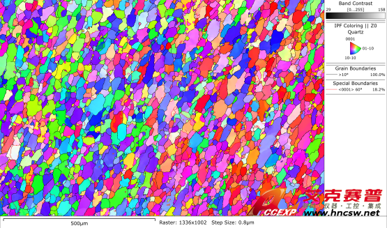 電子背散射衍射(EBSD)是一種基于掃描電子顯微鏡(SEM)),提供樣品顯微結(jié)構(gòu)晶體學(xué)信息的技術(shù)。在EBSD中,電子束與傾斜的晶態(tài)樣品相互作用,形成衍射花樣。衍射花樣可以通過熒光屏探測到,它具有所產(chǎn)生處樣品的晶體結(jié)構(gòu)和取向特征。因此,衍射花樣可用來確定晶體結(jié)構(gòu)及取向、區(qū)分晶體上不同的相、表征晶界、和提供有關(guān)局部結(jié)晶完整性的信息。