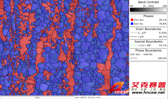 依據(jù)ASTM E2627標(biāo)準(zhǔn)分析雙相不銹鋼的晶粒度,晶粒數(shù)量 >2000個,時間<80秒。