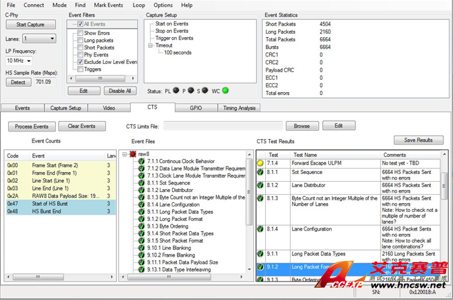 Envision X84支持在C-PHY和D-PHY(80Msps – 2.5Gbps)的整個數(shù)據(jù)范圍內(nèi)進行驗證。C-PHY每秒支持高達3.5 GigaSymbols或每個樣本約3.16位。每個通道2.5Gbps x3.16 = 7.9Gbps Envision X84最多支持3條C-PHY通道,并具有從三重奏真正的時鐘恢復(fù)功能。它最多支持4條D-PHY通道,并具有用于直接控制攝像頭和顯示器的GPIO接口。