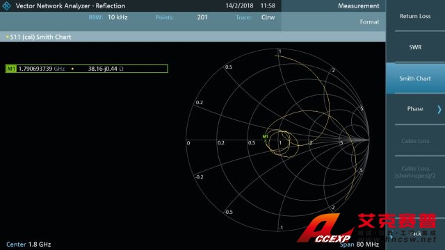R&S FPC1500 采用獨(dú)特的內(nèi)部 VSWR 電橋設(shè)計(jì),可以執(zhí)行單端口矢量反射測量。此功能可用于射頻天線或射頻電路的阻抗測量,并可顯示史密斯圓圖;或進(jìn)行故障點(diǎn)距離測量以檢測長射頻電纜的故障點(diǎn)。