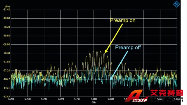 R&S Spectrum Rider 的 DANL 低至 –146 dBm(典型值)。DANL 較低,表明分析儀可捕獲微弱信號(hào)。開啟前置放大器(選件),將靈敏度進(jìn)一步提升到低至 –162 dBm(20 MHz 至 3 GHz)。前置放大器選件: