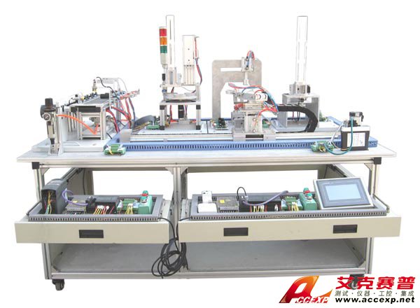 鋁合金導(dǎo)軌式實(shí)訓(xùn)臺(tái):可以安裝送料機(jī)構(gòu)、機(jī)械手、傳輸分揀機(jī)構(gòu)。實(shí)訓(xùn)模塊及PLC主機(jī)等可以放置在拉出式的支架上。