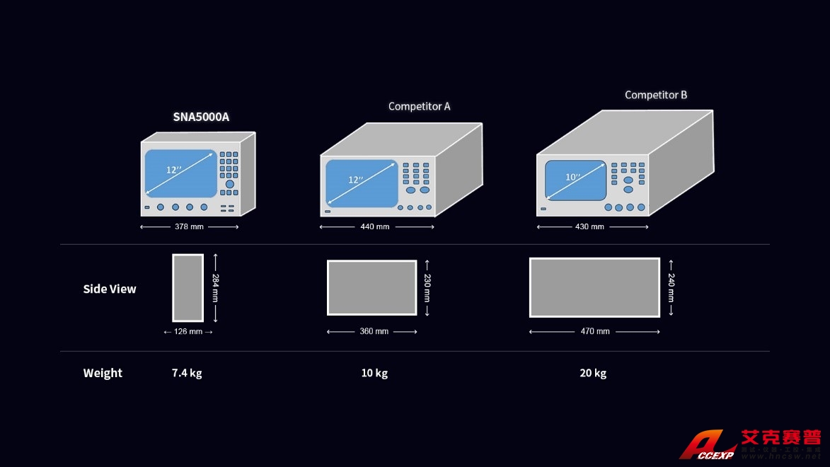 不管是在研發(fā)還是在現(xiàn)代化的生產(chǎn)線,區(qū)別于傳統(tǒng)笨重的矢量網(wǎng)絡(luò)分析儀,SNA5032A超前的外觀設(shè)計都能為工程師或者產(chǎn)線節(jié)省大量的桌面空間。