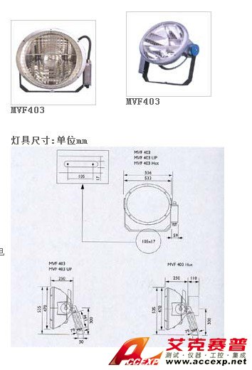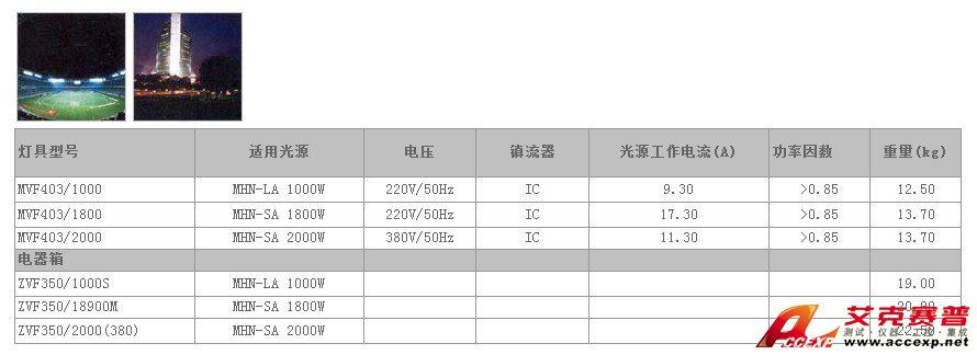 高功率投光燈具(Arena Vision)MVF403系列燈具外形緊湊美觀.風(fēng)阻系數(shù)小.重量輕,全新設(shè)計(jì)的橢圓形反射器.配光效果好.效率高,7種不同配光的反射器.滿(mǎn)足各種應(yīng)用要求.并有調(diào)光刻度板,有瞄準(zhǔn)器.防眩光板.彩色濾光片等多種配件可供選擇,可配1000W/1800W/2000W雙端金鹵燈.光源顯色性Ra=92.色溫5600K.適合現(xiàn)場(chǎng)彩電轉(zhuǎn)播,背后開(kāi)啟更換燈泡.附安全開(kāi)關(guān).維護(hù)更加安全方便,有上照型.下照型和熱啟動(dòng)型供選擇,分離式配電箱.用途廣泛.是飛利浦照明燈具產(chǎn)品的精品之作。