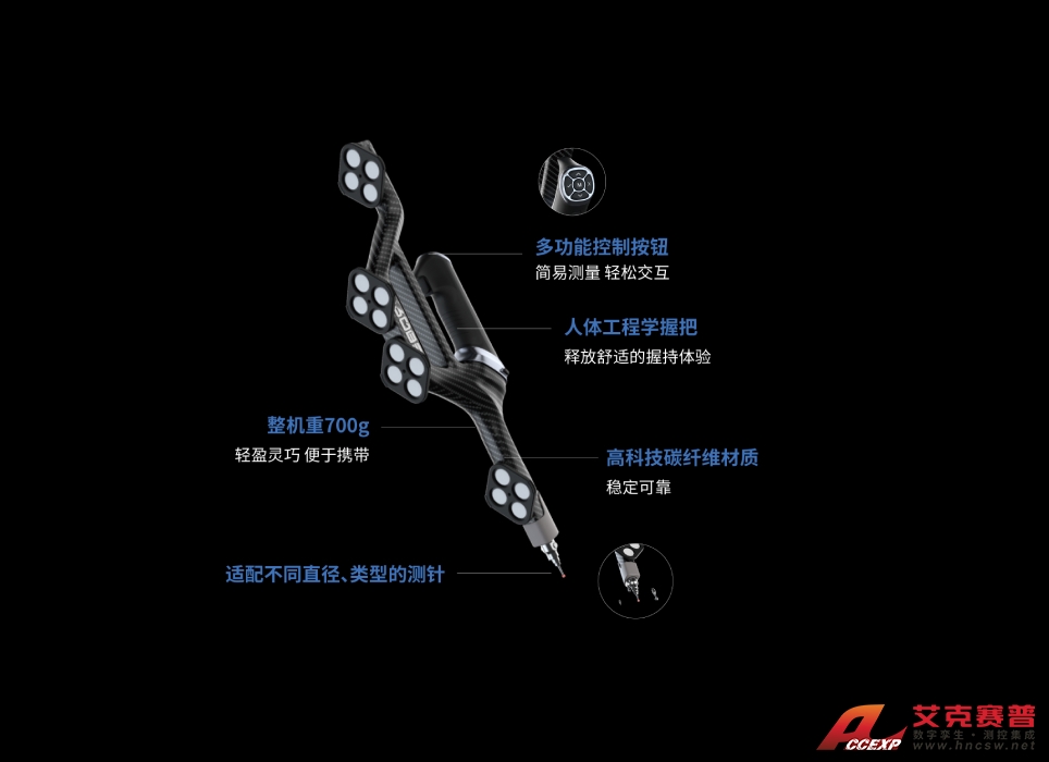航天級碳纖維材質(zhì)掃描儀i-Scanner,球形設(shè)計結(jié)構(gòu),堅固耐用;搭配一體式人體工程學(xué)控制握把,便于長時間單手靈活移動掃描儀,讓技術(shù)人員在不同的測量場景中,更加敏捷自如,帶來人機合一的掌控感。