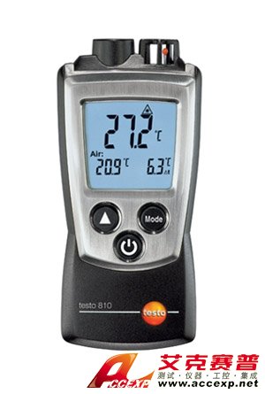 德國德圖testo 810是一款既能測量空氣溫度又能紅外非接觸測量表面溫度的儀器,可以用于比較室內(nèi)溫度,散熱器表面溫度,通風(fēng)口或窗口溫度的溫差.